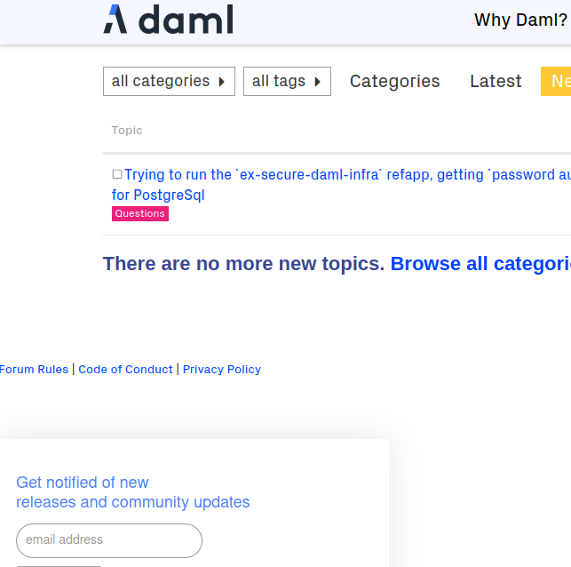 I just noticed this morning that on every page on the Daml Forum, while logged in, there is this ‘aggravating little popup’ offering to ‘get notified of every new release…’
