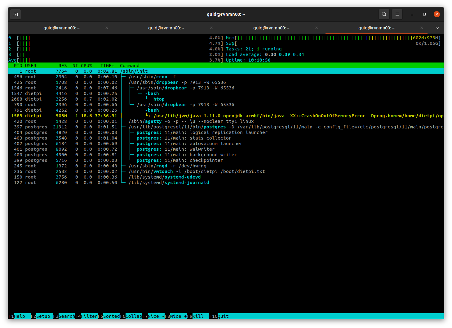 When the Ping command was executed, CPU utilisation was about 200% on 4 x 1.4Ghz cores, while MEM utilisation jumped to 680M/973M and stayed there. 10 minutes after executing the command, the MEM has only dropped back to 602M/973M, and the command still fails.