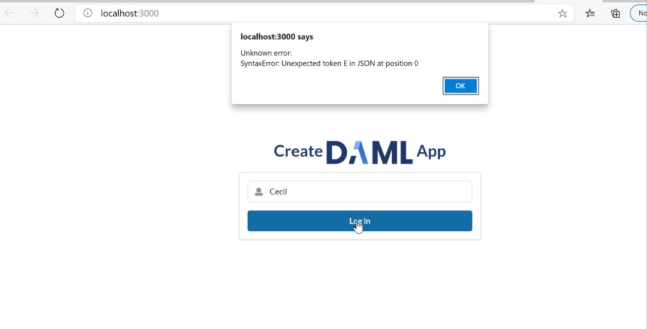 I just finished updating my version of the DAML SDK to the latest and when I attempt to login to the Navigator. This is when using the create daml app, I get the following error message:
