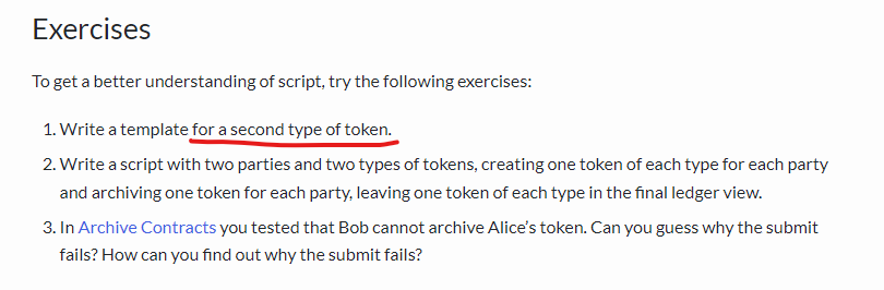 I am very much new to Daml and struggling to understand the very much basic things. Posting this so that can get some help from the Damlers. So I was going through the Daml documentation and came to one of the exercise. I am just having one doubt in the first statement of the exercise i.e.