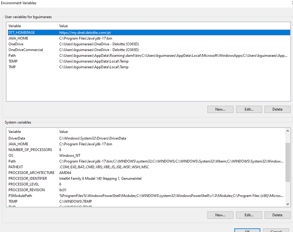 Try removing “\bin” at the end of the current value of your JAVA_HOME variable. In other words, try setting JAVA_HOME to “C:\Program Files\Java\jdk-17”.