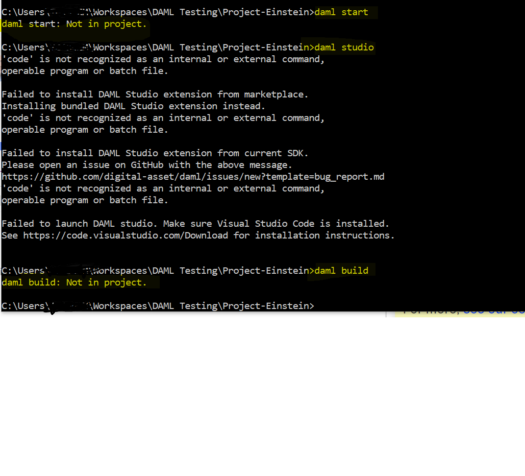 am new to DAML and am unable to launch daml Studio through command prompt, i have already installed visual studio code and SDK… i got the below error message. kindly help…