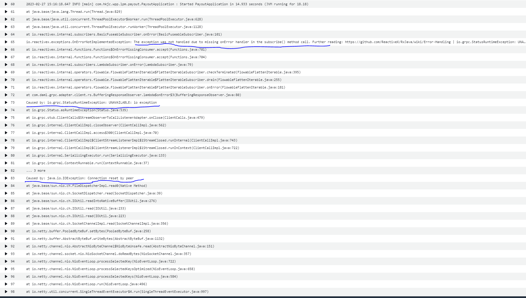 After I added retry(), the code no longer has connection exceptions, and it can listen normally when it starts running, but after running for a while, can see the log of the successful creation and modification of the contract in canton, but the program will no longer continue to listen , the program log is no longer updated