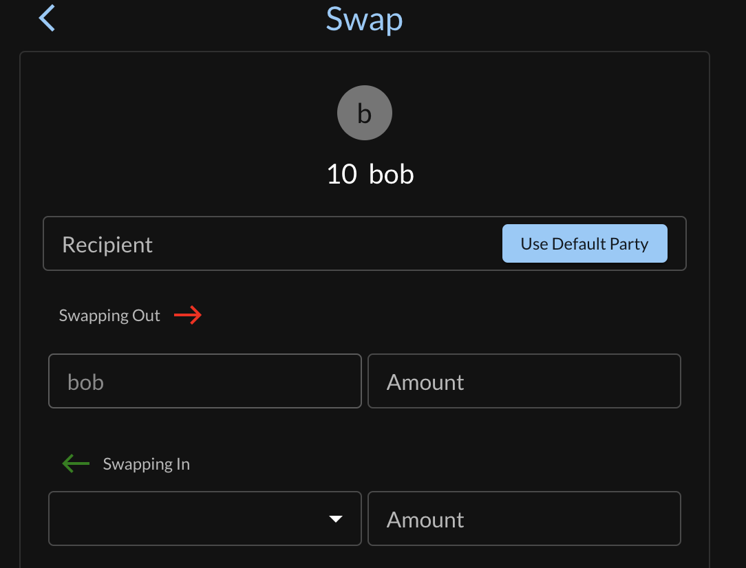 In the screenshot below, I want to make a swap with the “default Party”. On hub, clicking the “use Default Party” gets the partyID from useAdminParty.