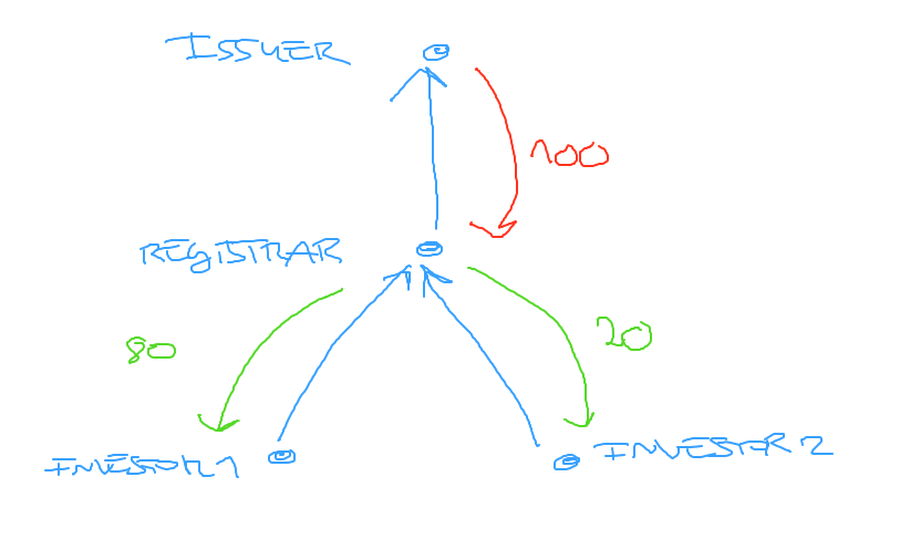 The issue in this case is the fact that the Distribution in the app only distributes the holding from registrar to end investors, but does not create the additional holding from issuer to registrar to fully complete the hierarchical structure.