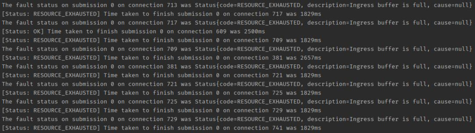 Next question, also while overloading a Participant Node, we encountered a RESOURCE_EXHAUSTED scenario which did not provide any description in the error message: