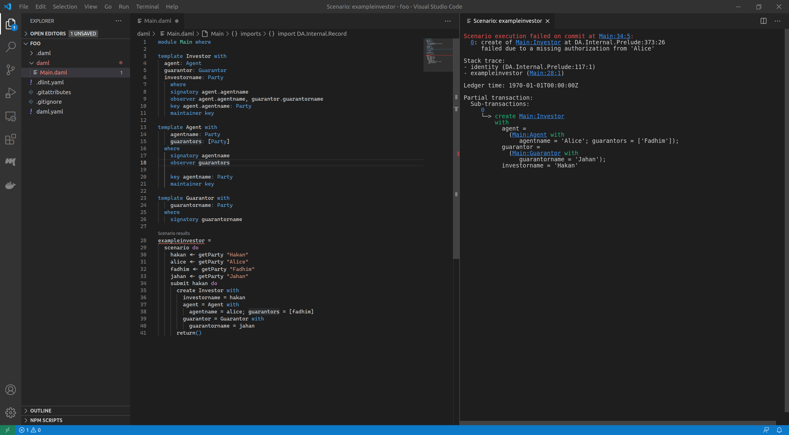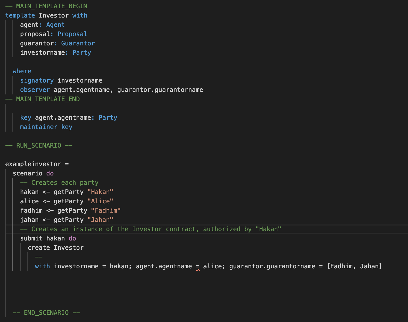 the field agent in Investor is of the data type that corresponds to the payload that a contract of type Agent could have, but does not necessarily correspond to any Agent contract on the ledger, so you may believe you have a lot more consistency guarantees than you actually do.