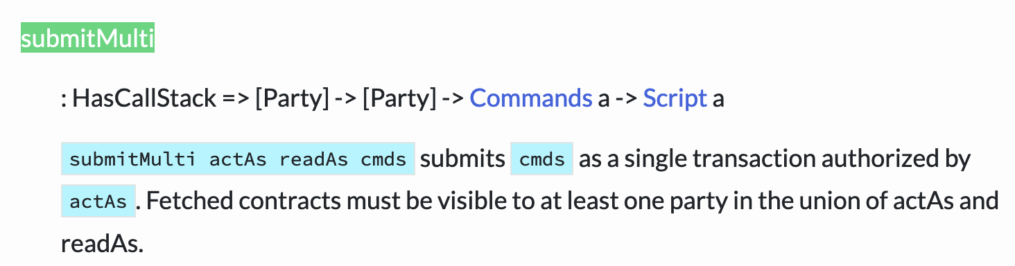 While coding submitMulti command against damlhub i encounter the below error that apparently related to a missing token which represents both actAs and readAs parties.