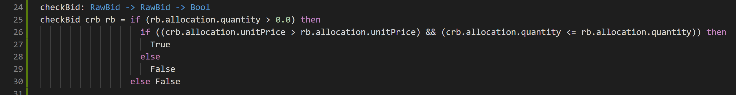 checkBid: ContractId RawBid -> ContractId RawBid -> Update Bool