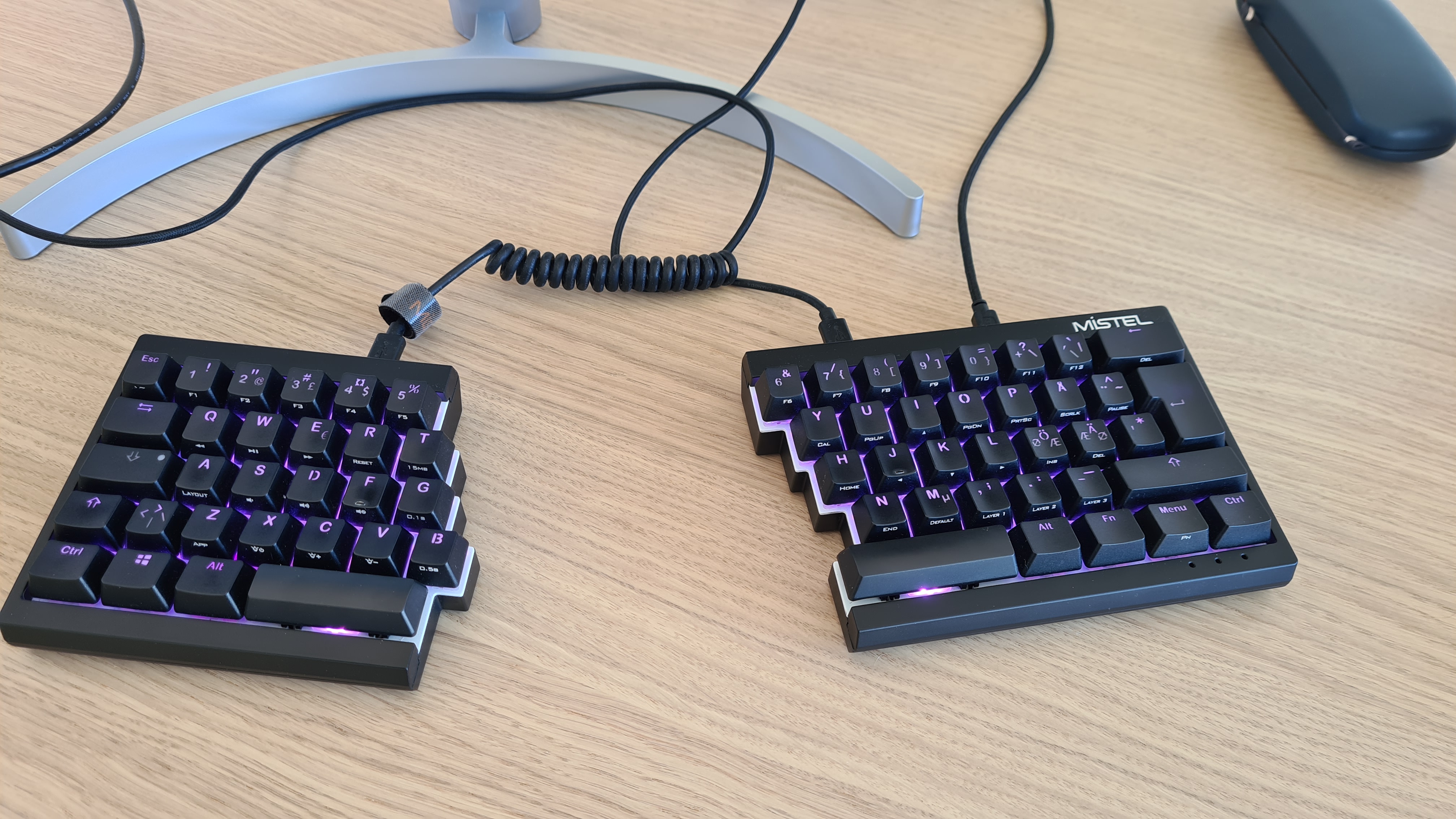 For travel, I bring along the awesome Unigo66 with my favorite switches, Hako True, and my favorite keyset, GMK Olivia. This neat little hardware hack has been to Zürich, among other places.