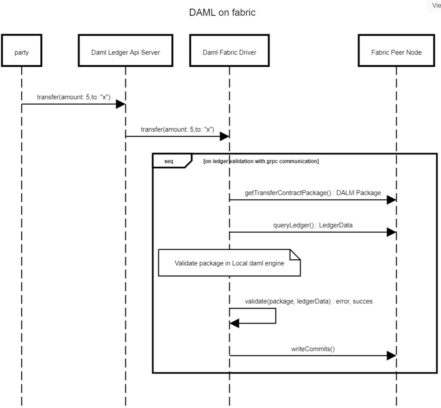 So to summarize, Daml itself is a smart contract language but it doesn’t transpile to Chaincode (in theory we could do that but it would have many limitations). Conceptually we do something similar to Fabric but instead of validating the smart contract directly in chaincode, we deploy a chaincode onto the Fabric peer which communicates over an RPC with a local Daml engine which runs the validation.
