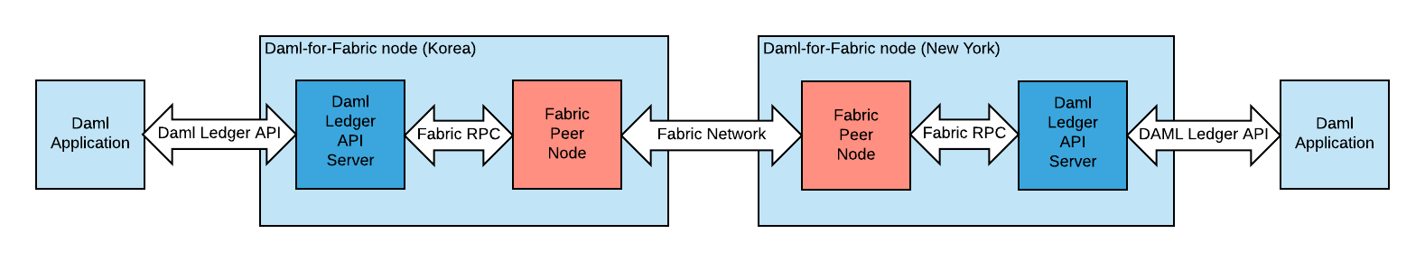 From the perspective of a Daml application, it is communicating with a Daml ledger and the fact that there’s a Fabric network storing and coordinating data behind the scenes is just an implementation detail